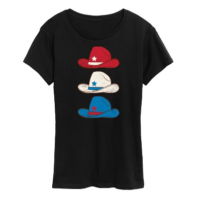 Women's - Instant Message - Red White Blue Cowboy Hat Short Sleeve Graphic T-Shirt