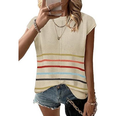 Women's V - Neck Cap Sleeve Knit Blouse Summer Casual Tops