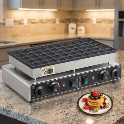Garvee Electric Pancake Maker, 50-Hole Mini Dutch Pancake Baker with Round Pan and Temp Control for Home, 1700W, Silver/Black