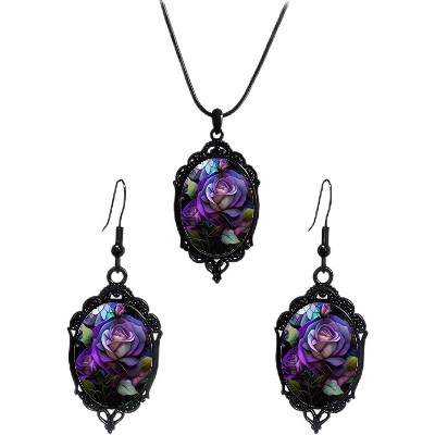 Dark Victorian Gothic Set - Crow Pendant Necklace & Witch Cameo Earrings, A Luxurious Halloween Accessory Collection