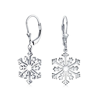 Bling Jewelry Frozen Winter Christmas Holiday Party Snowflake Dangle Lever back Earrings For Sterling Silver
