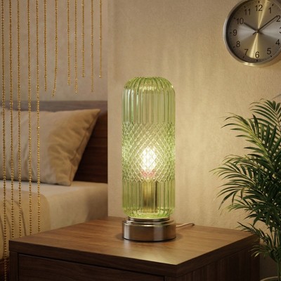 Ribbed Glass Table Lamp with Touch Dimming and Antique Bronze Base