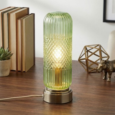 23.25" Contemporary Rippled Colored Glass Bedside Desk Table Lamp with Fabric Shade White/Green - Lalia Home: UL Listed, No Assembly Required