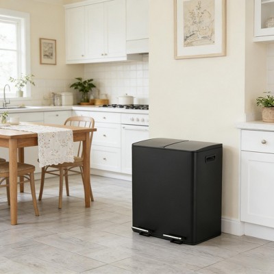16 Gallon Stainless Steel Dual Compartment Step Trash Can and Recycling Bin with Soft-Close Lids and Removable Inner Buckets