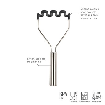 Tovolo Stainless Steel Handled Potato Masher Charcoal Gray: Silicone & Stainless, Hand Wash, 14.1" Length, 6.3" Width