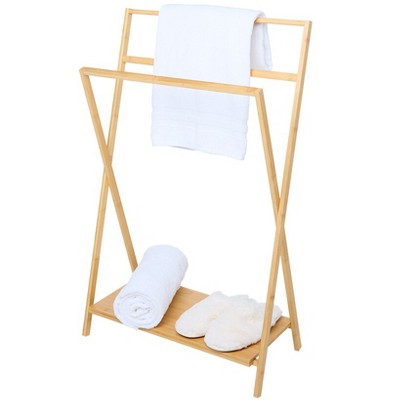 The Lakeside Collection 38.5" Tall Bamboo Wood Towel Rack with Bottom Organizing Shelf