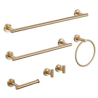 Tramull 6-Piece Brass Bathroom Towel Rack Set, Wall Mounted, Rustproof for Bathroom, Kitchen & Laundry Room