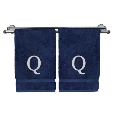 BC BARE COTTON Monogrammed Hand Towel, 100% Turkish Cotton - Set of 2 - Navy - White Block