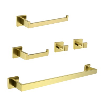 Cobbe Bathroom Pendant 5-Piece Set (Towel Rack, Hand Towel Bar, Toilet Paper Holder, 2 Towel Hooks) Brushed Gold Wall Mounted Bathroom Hardware Set
