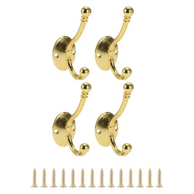 Unique Bargains Vintage Clothes Hooks 3.98"x1.34"x2.64" Gold Tone 4 Pcs