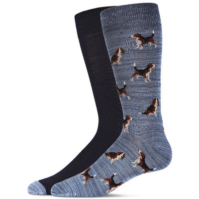 Memoi Men's 2 Pair Pack Beagle Dog Bamboo Blend Crew Socks