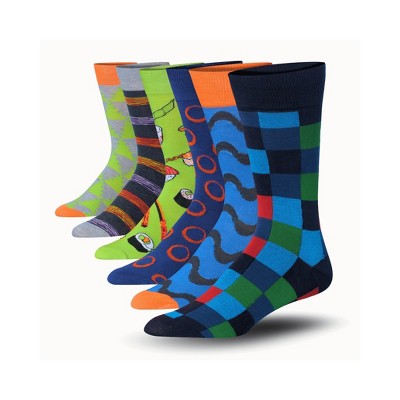 JAMES FIALLO Mens 6 Pairs Novelty Waves Whimsical Food Colorful Patterned Crew Dress Socks