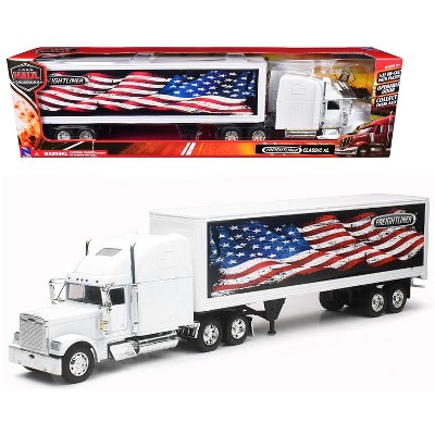 Freightliner Classic XL Truck White with Dry Van Trailer White with Patriotic Graphic 1/32 Diecast Model by New Ray