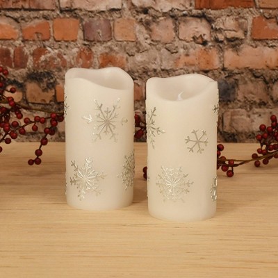 Lumabase 2ct Battery Operated Wax LED Candles Snowflake