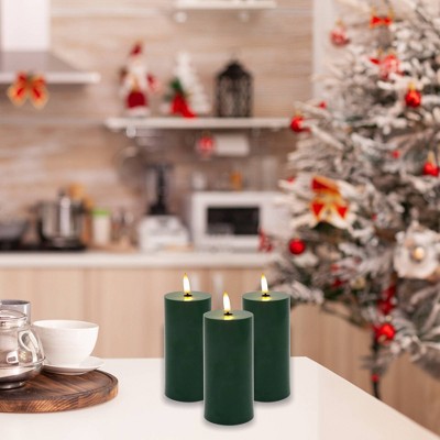Lumabase 3ct Battery Operated 3D Wick Pillar Candles Green