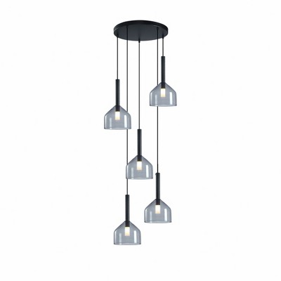 Progress Lighting Atwell 5-Light Chandelier, Matte Black, Clear Glass Globe Shades