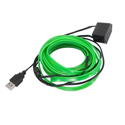 Unique Bargains Car Interior USB EL Wire String Strip Green Cold Light Set 5 Meter/16ft