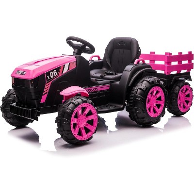 Kids Ride On Tractor with Trailer, 12V Battery Powered Electric Tractor with Remote Control, Music, USB, Led, Unload Button