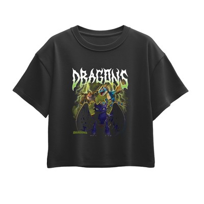 Girls' - How to Train Your Dragon - Dragons Metal Short Sleeve Boxy Graphic T-Shirt