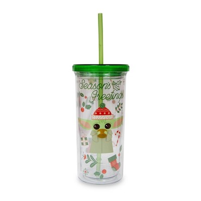 Silver Buffalo Star Wars: The Mandalorian Grogu Christmas Icons Carnival Cup With Lid and Straw