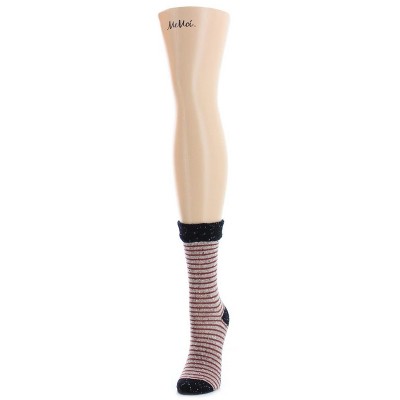Memoi Women's All-Over Rhinestone Studded Sheer Crew Sock