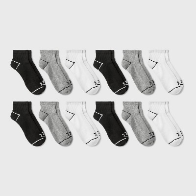 Men's Assorted Ankle Socks 12pk - All In Motion™ 6-12: Arch Support, Cushioned Heel, Midweight Knit Fabric