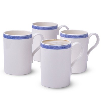 Portmeirion Potters 9oz Ceramic Mug (Set of 4) - Handcrafted Coffee Mugs with Blue Brushstrokes - Dishwasher, Microwave Safe - Earthenware - (Blue)