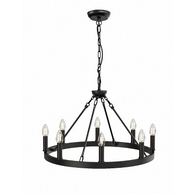 BAOURE 8-Light (No Bulbs) Matte Black Wagon Wheel Chandelier Farmhouse Modern Small Round Chandelier for Living Room Kitchen Island Foyer Hallway