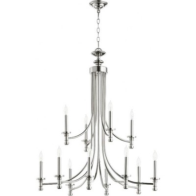 Quorum Lighting Rossington 12-Light Chandelier, Polished Nickel, 31.5W x 37.5H, 60W, Dry Rated
