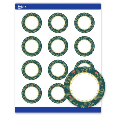 Avery Round Cards, 2", Black Flourish & Gold Leaves Design, Matte