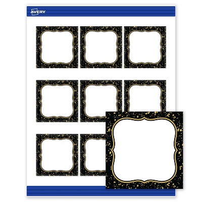 Avery Round Cards, 2", Black with Gold Specs Design, Matte