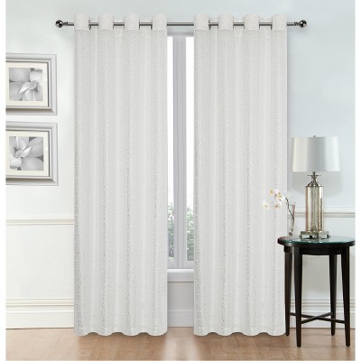 Kate Aurora Glam Chic Living 2 Pack Metallic Foil Sparkle Slub Sheer Grommet Top Curtain Panels