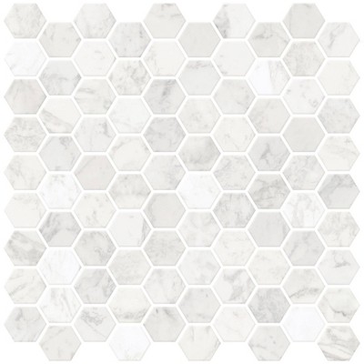 InHome Hexagon Marble Peel & Stick Wallpaper Backsplash White: Vinyl Self-Adhesive Geometric Tile Paper, 4 Pieces