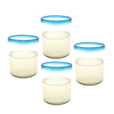 Dos Sueños Mexican Hand Blown Tumblers - Aqua Rim - 10oz - Set of 2