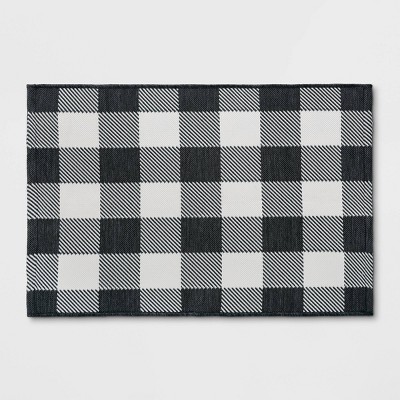 2'x3' Washable Reversible Scatter Indoor/Outdoor Accent Rug Black/White - Threshold™: Check Pattern, Polypropylene, Flat Pile