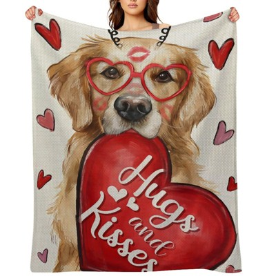 Valentine's Day Throw Blanket - Golden Retriever Hugs & Kisses, Ultra Soft Anti-Pilling for Couch & Travel 40x50 inches