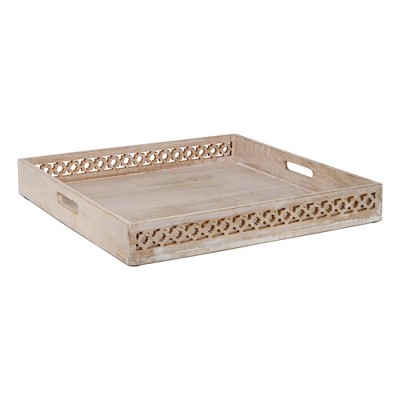 Mela Artisans Decorative Wood Serving Tray w/ Handles (Whitewash) Small Ottoman Tray for Breakfast in Bed 14 x 10 x 2.5"