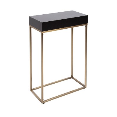Kate and Laurel Karlsen Wood and Metal Slim Side Table, 16x8x24, Gold and Black