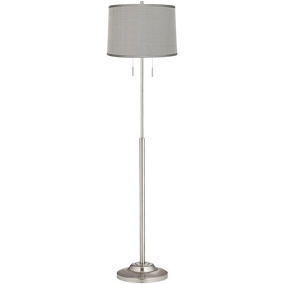 360 Lighting Abba Modern Floor Lamp 66" Tall Brushed Nickel Platinum Gray Dupioni Silk Drum Shade for Living Family Room Bedroom Office House Home