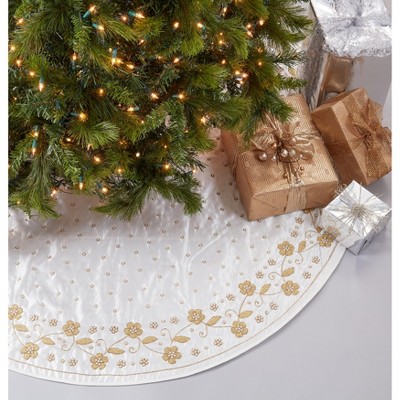 Saro Lifestyle Handcrafted Beaded Flower Tree Skirt, 54"X54" Round, Gold