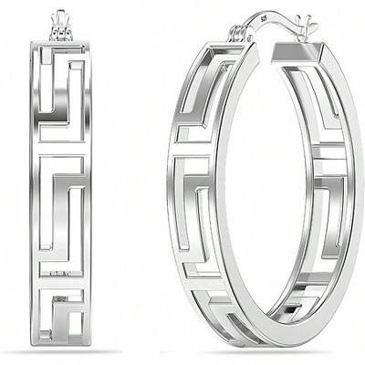 Sterling Silver Key Hoop Earrings, Lightweight Click - Top, Wall Cut - Out for Women