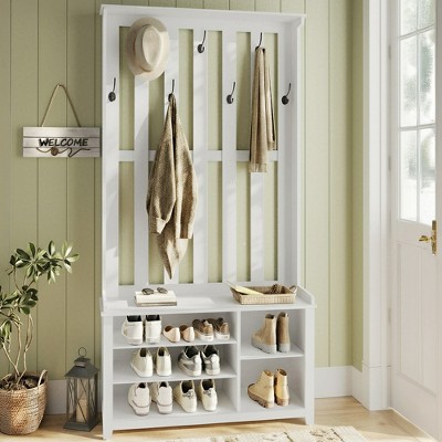 Hommpa 7 Tri-Hooks LED Entryway Hall Tree with Storage Bench, Coat Hooks & Shoe Cabinet