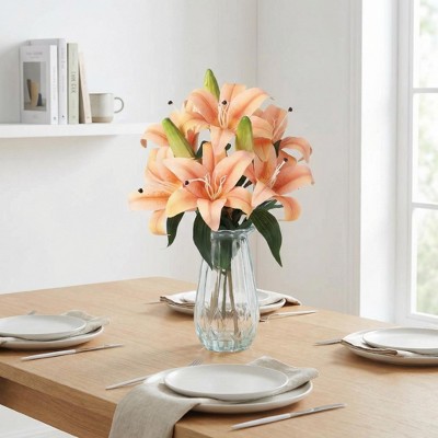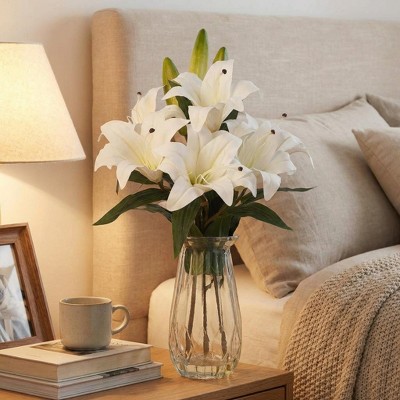 3 Pack Artificial Lily Stems with 6 Blooms & 3 Buds Each, UV Resistant Real Touch Faux Flowers for Home Wedding Outdoor Decor