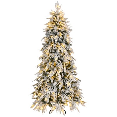 ChicFurnit Artificial Trees 7FT Christmas Tree Stands Slim Flocked Christmas Tree Holiday Decorate Tree for Home Party, White, 43"*43"*82.67"