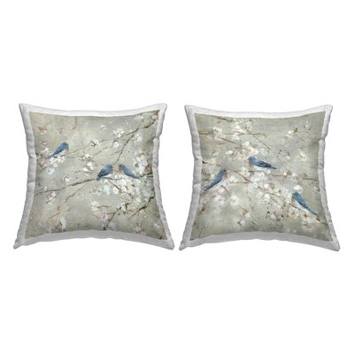 Stupell Industries Blue Birds Perched Tree Blossoms Spring Scene 2pc Indoor Decorative Throw Pillow Set, 18 x 18 Each