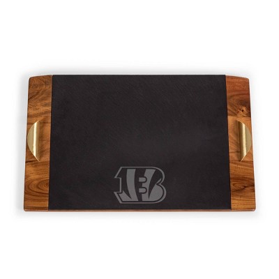NFL Cincinnati Bengals Covina Acacia Wood and Slate Black with Gold Accents Serving Tray