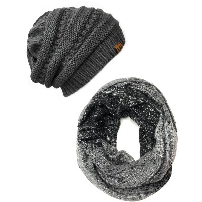 Wrapables Winter Warm Knitted Infinity Scarf and Beanie Hat Set, Light Gray