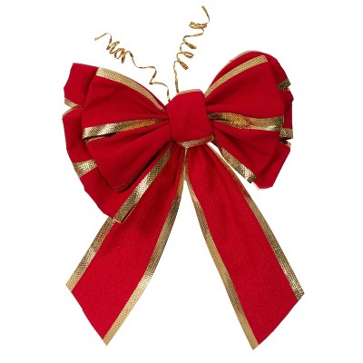 Vickerman 12"x13" Red Velvet-Gold Trim 11-Loop Hand Tied UV Bow