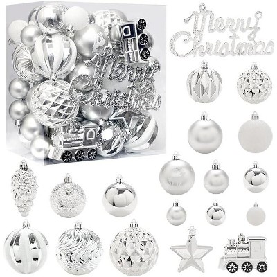 R N' Ds Christmas Hanging Ball Ornaments - Silver and White - 75 Pack