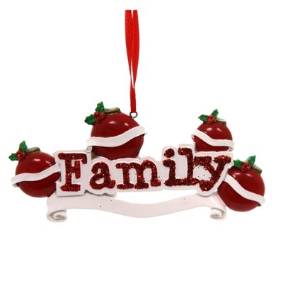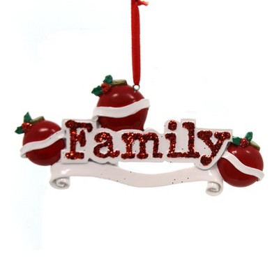 Polarx 2.5 Inch Red Family Christmas Tree Ornament , Glittered Holiday (1PC)